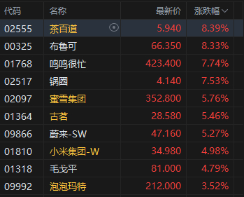 新消费概念股拉升,布鲁可涨超8%。布鲁可公布度业绩,收入约29.13亿元,同比增长30%;毛利约13.64亿元,同比增长15.7%;母公司拥有人应占溢利约6.34亿元,同比扭亏为盈;每股基本盈利2.58元。