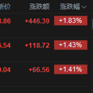 3月24日消息,港股三大指数集体上涨。截至午间收盘,恒生指数涨1.83%,报24828.86点,恒生科技指数涨1.41%,国企指数涨1.43%。盘面上,科网股涨多跌少,联想涨超3%,美团涨超2%;黄金股回暖,赤峰黄金涨超7%;生物医药股普涨,药明康德涨超8%;今日两只新股上市,凯乐士科技涨超81%,泽景股份跌超30%。