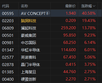 港股收评:恒指跌0.2% 科指涨0.77% 有色金属板块走弱 苹果概念走强 半导体板块大涨