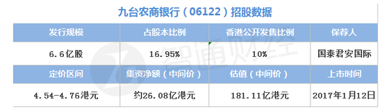 12月30日,九台农商银行(06122)正式启动招股,即将成为继重庆农商行(03618)之后,第二家在港上市的内地农商行。