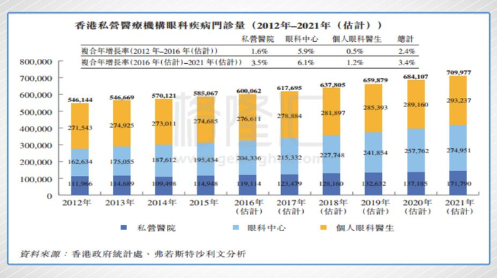 眼科疾病的患病率上升,各种眼科疾病的患病率上升导致香港优质眼科服务的需求增长,从而为私营部门提供了巨大的发展机会。居民人口向老龄的转变将加大年龄相关眼科疾病(包括白内障及黄斑病变)的患病率。近视(年轻人最常见的眼科疾病)患病率亦会上升。
