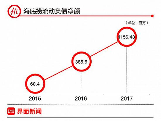 相比之下,海底捞简直就是赚钱的马达,但还不够,此次海底捞预计上市募资金的60%用于开店扩张计划。海底捞近两年扩张速度明显提升,门店数在3年间差不多翻了一番。招股书预计,2018年海底捞将开设180家-220家新餐厅,这同时会带来巨额流动负债,所以到资本市场融资可能是海底捞上市的主要原因。