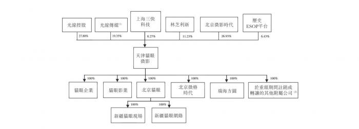 股权结构方面,去年重组后的猫眼微影,最大股东仍然为光线传媒及其关联方。