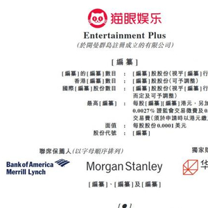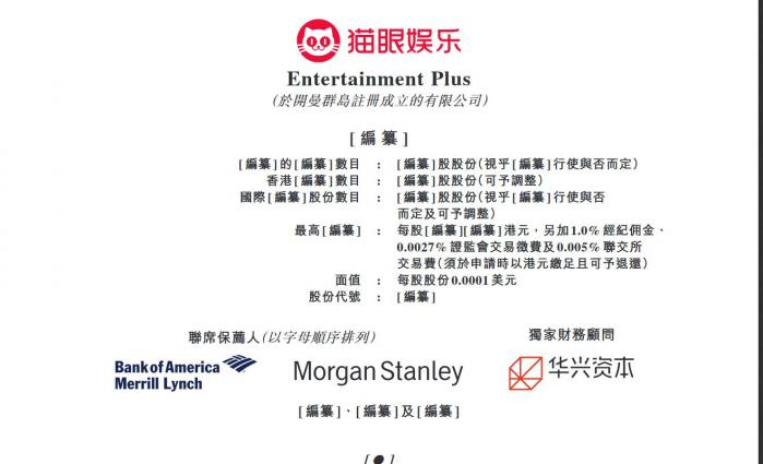 9月3日晚间,港交所披露了猫眼微影的招股说明书。招股书显示,猫眼微影上市名称为“猫眼娱乐”,联席保荐人为美银美林和摩根士丹利,独家财务顾问为华兴资本。