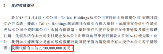 新浪财经查询发现,今年4月,美团以27亿美元收购摩拜,同时也接过了摩拜10亿美元的债务。美团在招股书也更新了摩拜单车的运营状况,截至2018年4月30日止4个月,摩拜有4810万名活跃用户及710万辆活跃单车。27亿美元,目前折合185亿元人民币,占美团前四个月亏损额的81%。如果没有花费27亿美元,美团前四月调整净利将高达165亿元。