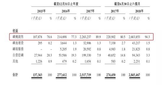 在矿机领域,比特大陆占有全球 74.5% 的市场份额。通过招股书不难看出,矿机销售是比特大陆最大的收入来源,2018年上半年矿机销售收入占比94.3%。