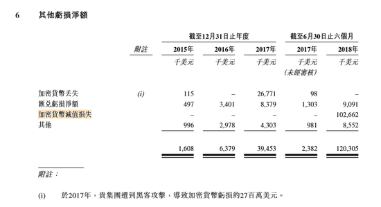 招股书透露,仅2018年上半年,比特大陆因加密货币减值损失 1.02 亿美元。