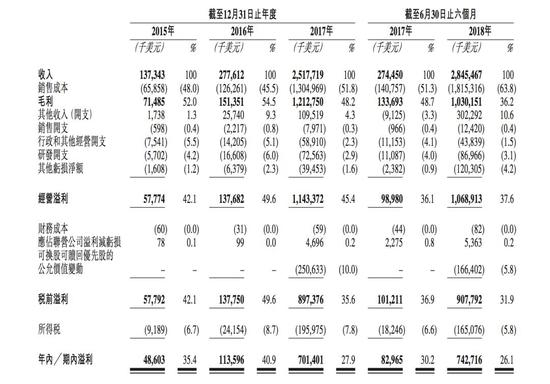 2017年和2018年上半年,比特大陆的营收分别为25.17亿美元、28.45亿美元;2017年和2018年上半年,比特大陆的净利润分别为7.01亿美元、7.42亿美元,调整后净利润(不包括股权激励费用及可换股可赎回优先股的公允价值变动)均为9.52亿美元。