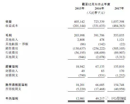 虽然数据增长让整个报告显得十分亮眼,但细读可以了解,以2017年为例,公司实现毛利润5.53亿元,销售费用支出为3.05亿元,其中“推广和营销”支出为2.08亿元,相当于毛利润的38%。