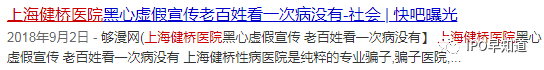 与艺星医美深陷侵权泥潭相似的是,陈氏在上海的数家医院也被多次卷入虚假广告的争议。在百度搜索上海健桥医院后,关于医院虚假宣传的投诉帖纷纷弹出。