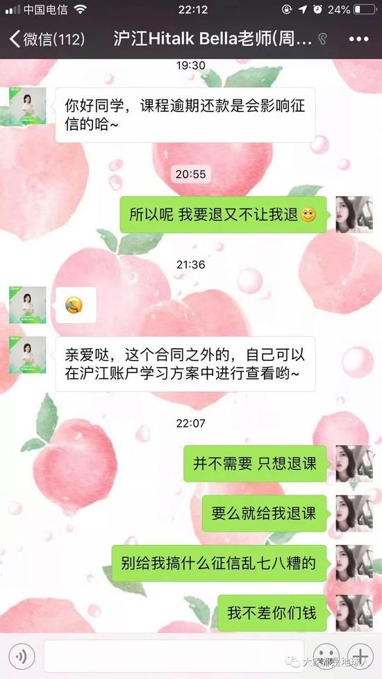 结果微博评论没等到几个,做贼心虚的沪江网校竟然主动联系我说可!以!退!款!了!但说是特殊关照我和我朋友,但是要我承认违约,扣我20%违约金,还要我删帖,签保密协议(正好ipad在旁边就录音了)。