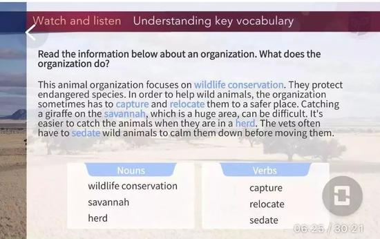 然后第一册第一页的课文就是讲东非大草原,斑马,犀牛之类的,文章是一段英国探索频道的音频原文,课件音频我几乎完全听不懂,甚至拿腾讯翻译官来听,很多都翻译不出来...
