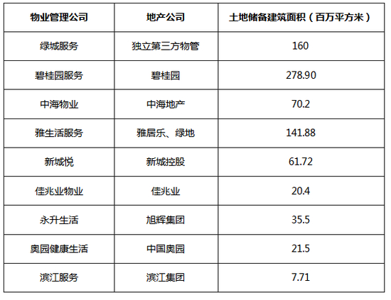 作为独立第三方物业管理公司,绿城服务与诸多依赖地产公司的同业公司相比,储备也是很充足的,克而瑞数据显示,2018年上半年中海物业、碧桂园服务、永生生活、新城悦、雅生活等背靠的地产公司所拥有的土地储备面积如下图所示。绿城服务的储备面积仅低于地产龙头碧桂园旗下的碧桂园服务。