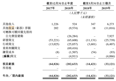招股书资料显示:2017财政年度、2018财政年度及2019年第一财政季度康宁杰瑞的收入分别为142.8万元、-905万元及-474.3万元,净利润分别为-6482.6万元、-2.03亿元及-3312.1万元。