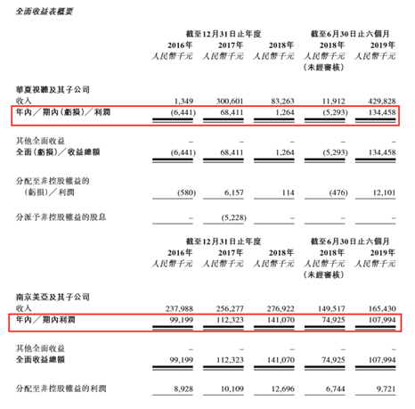 业绩方面,2016年、2017年和2018年,华夏视听总收益分别为2.39亿元、5.57亿元及3.68亿元人民币,利润分别为9280万元、1.81亿元及1.49亿元。