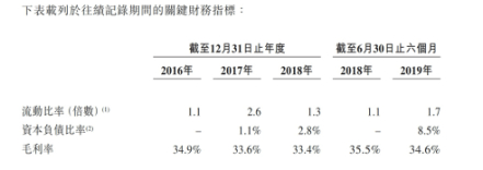 财务方面,截至2016年、2017年及2018年12月31日止年度以及截至2018年及2019年6月30日止六个月,中手游的营收分別為人民币10.01亿元、人民币10.13亿元、人民币15.96亿元、人民币6.73亿元及人民币15.29亿元,净利润分别为人民币1.89亿元、人民币2.65亿元、人民币3.16亿元、人民币1.63亿元及人民币2.50亿元;流动比率分别为1.1、2.6、1.3、1.1和1.7;毛利率分别为34.9%、33.6%、33.4%、35.5%和34.6%。