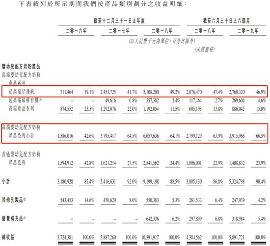 公司在招股书中表示,未来将继续加大高端婴幼儿配方奶粉产品的收益占比。