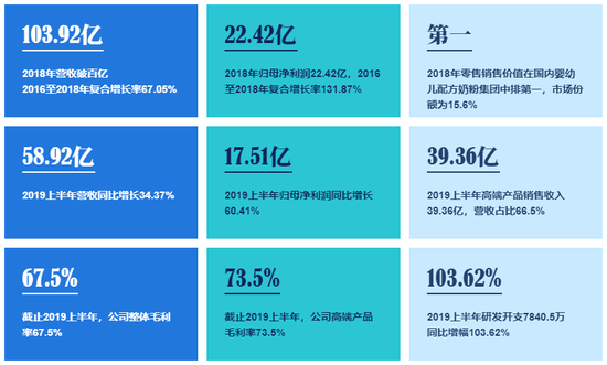 招股书显示公司的婴幼儿配方奶粉产品分为高端和普通两大类。其中,高端婴幼儿配方奶粉产品收入及占比的增长是公司近年业绩增长的主因之一。