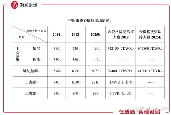 智通财经观察到,2018年,全球主动脉瓣患者达到4530万,其中主动脉瓣狭窄患者1930万人,主动脉瓣返流患者达到2600万人,根据预测,2025年主动脉瓣患者将达到5190万人。