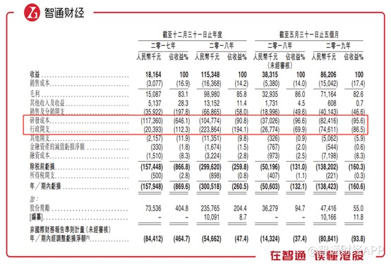 智通财经观察到,2017年至2018年以及截至2019年5月31日止5个月,公司录得收益分别为1816.4万元、1.15亿元以及8620.6万元;期内亏损分别为1.58亿元、3.01亿元以及1.38亿元;期内毛利率分别为83.1%、85.8%以及82.6%。