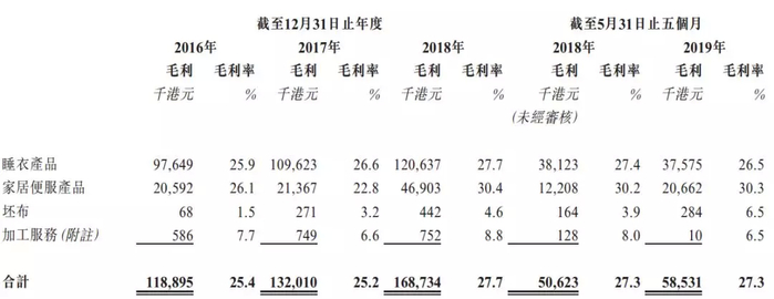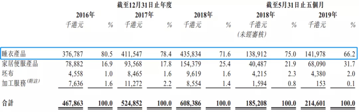 捷隆控股主要拥有睡衣和家居便服两大产品,在2016年到2018年,以及2019年前五月期间,公司服装产品总销量增长稳定,与此同时公司各个产品的平均售价都出现有一定增长,因此公司营收录得稳定提升。
