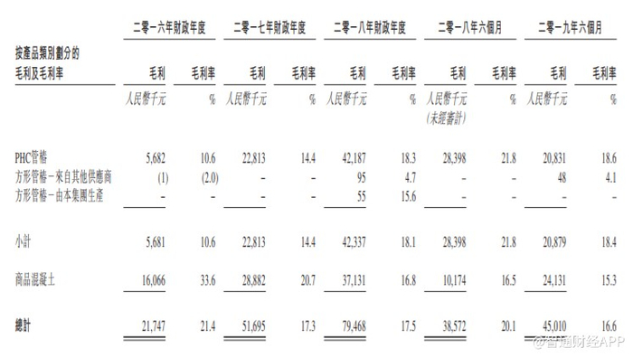 该公司的整体毛利率由2016财年约21.4%减少至2017财年约17.3%,主要由于销售成本整体上涨,特别是砂及砂砾的成本增加已部分抵消PHC管樁及商品混凝土售价提高的影响。其随后于2018财年维持相对稳定于约17.5%。