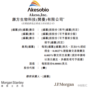 IPO那点事消息,港交所信息显示,12月3日,康方生物科技(开曼)有限公司递交港股主板上市申请,显示联席保荐人为摩根士丹利和摩根大通。