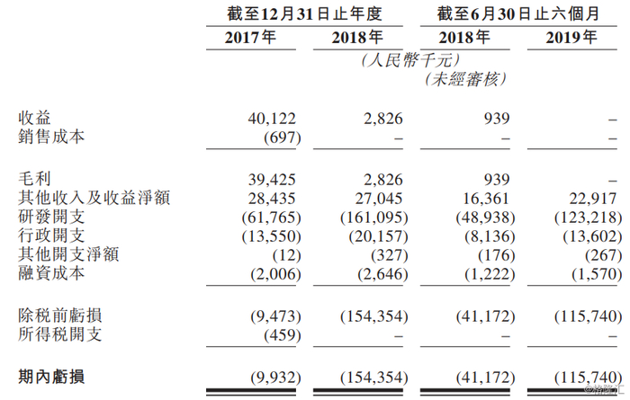 IPO那点事(ID:ipopress)获悉,截至2017年及2018年12月31日止年度以及截至2019年6月30日止六个月,该公司的亏损分别为人民币9.9百万元、154.4百万元及115.7百万元。绝大部分经营亏损由研发开支、行政开支及财务成本导致。