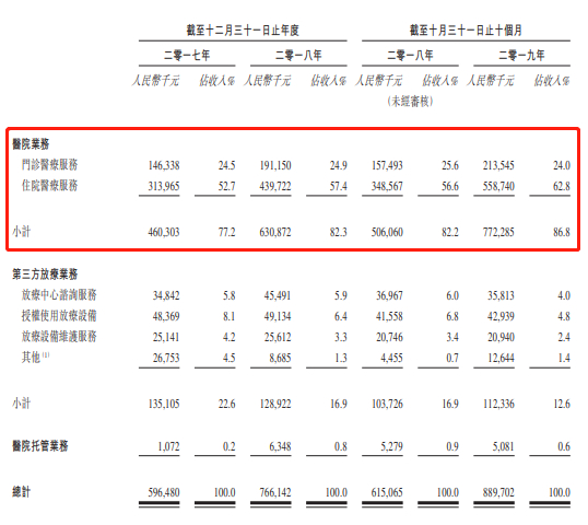 海吉亚医疗主要自以下各项产生收入:(i)经营自有的民营营利性医院及提供一系列肿瘤医疗服务及其他医疗服务;(ii)提供放疗中心咨询服务、授权使用公司的专利立体定向放疗设备及提供专利立体定向放疗设备的相关维护和技术支持服务;及(iii)管理及经营公司拥有举办人权益的民营非营利性医院并从中收取管理费。