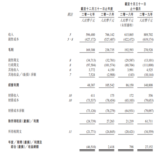 招股书显示,在过去的2017年、2018年 和 2019年前十个月,海吉亚医疗的营业收入分别为 5.96 亿、7.66 亿 和 8.90 亿人民币,相应的净利润分别为 - 4,651.0 万、241.8 万 和 2,715.2 万人民币。