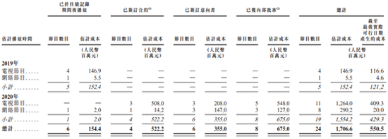 而2020年,或许将成为煜盛文化的跃进之年,按照公司原计划,2020年拟投入15.54亿元制作19套节目,其中包含11档电视节目和8档网络节目,平均单套节目的投资约为8000万元。不论是投资额还是参与节目数量,相较于此前有指数级增长。