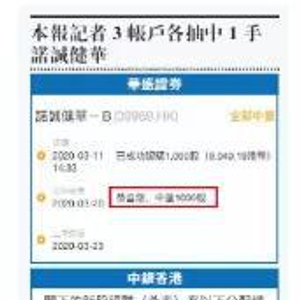 【明报】记者日前分别透过5个账户认购诺诚健华,5个户口都是同一人名下,以同样证件登记;于中银香港、友信证券、华盛的户口,各获分派一手。