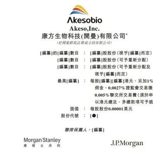 联交所资料显示,中国临床阶段生物制药公司康方生物科技已经通过上市聆讯。预计公司最快于4月内招股,计划集资约2亿至3亿美元(即15.6亿至23.4亿港元)。摩根大通和摩根士丹利为康方生物科技联席保荐人。