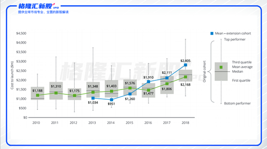 在新药研发周期持续拉长的同时,新药的研发的资金成本也在持续增加。