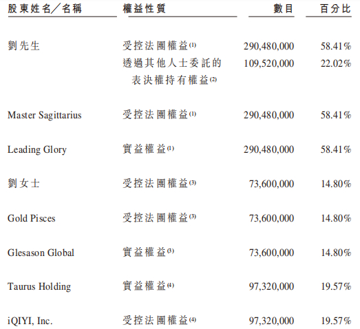 IPO前,实际控制人刘小枫持股58.41%,拥有80.43%的表决权。其次为爱奇艺持股19.57%、刘诗诗持股14.8%、赵丽颖持股0.79%。