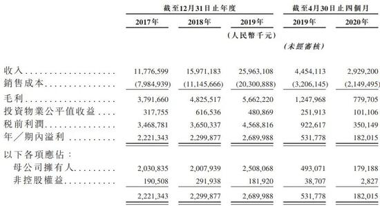 得益于优良的土储结构及强大的产品体系,过往金辉控股的财务表现还算不错。2017-2019年其的收益从117.77亿元增至259.63亿元,复合年增长率为48.5%;同期利润从22.21增至26.90亿元,复合年增长率为10.0%。