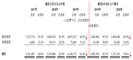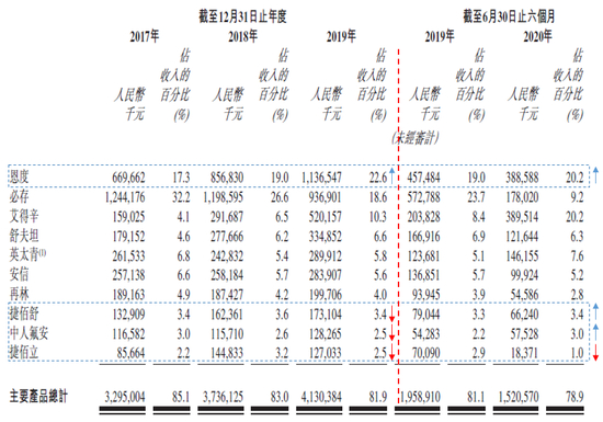 财务数据显示,2017至2019年度,先声药业的收入分别为38.68亿元、45.14亿元及50.37亿元,仿制药的收入贡献占先声药业收入的绝大部分。;另外,截至2020年6月30日止六个月,先声药业的净利润为1.85亿元,与去年同期的4.61亿元相比同比下降约60%。