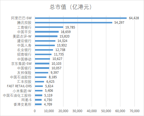 蚂蚁集团H股市值645亿美元,折合5000亿港元,计及超额配股权,蚂蚁H股市值722亿美元,折合5595亿港元。其市值和网易、小米相当。蚂蚁集团总市值2800亿美元,折合21700亿港元,在港股位列第三,仅次于阿里、腾讯,超越工行的市值。