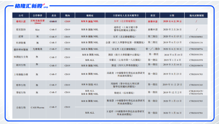 药明巨诺-B的主打候选产品relmacabtagene autoleucel(relma-cel)已经申报上市审批且获得优先审查的权力,在国内CAR-T疗法在研产品中属进度最快。并且公司由药明康德与美国Juno公司共同创建,其细胞治疗既能够借助美国JUNO Therapeutics公司的CAR-T工艺技术平台,也能获得CXO龙头企业药明康德的支持,对实现商业化有非常积极影响。