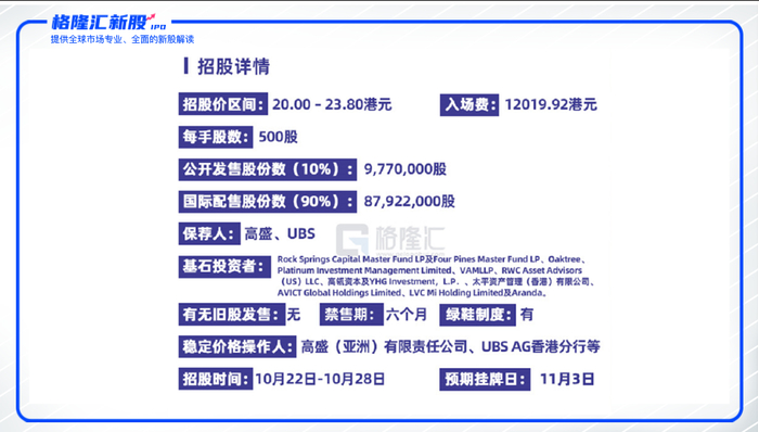 药明巨诺-B自10月22日开始招股,本次拟发行9769.2万股,每股发行价介于20-23.8港元,每手500股,入场费12019.92元,想要上乙头需要约722万。目前,作为一家临床及临床前阶段细胞治疗公司的药明巨诺-B,已经建立了一个为血液癌症及实体瘤开发、制造和商业化突破性细胞免疫疗法的一体化平台。