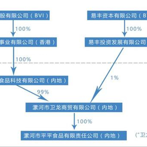 从平平食品的股权结构看,平平食品目前的股权结构为“英属维京群岛公司——香港公司——境内公司”3个层级。这种股权结构,与使用红筹上市模式的境内公司相似,这也成为市场猜测卫龙谋求海外上市的重要依据。