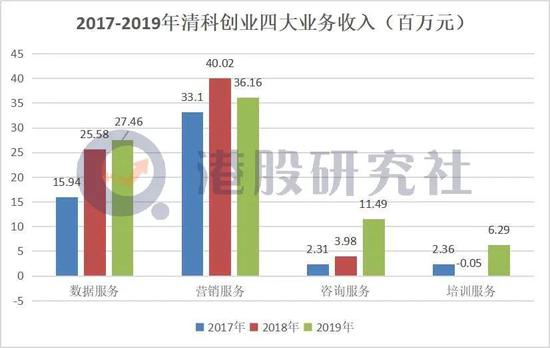 具体到公司的四大细分业务层面,分条线来看,2019年,数据服务的收入5311万元,占比31.7%;营销服务收入6777万元,占比为40.5%;咨询服务的收入2409万元,占比14.4%;培训业务收入2247.5万元,占比13.4%,相对于2018年都取得了一定的上升。