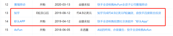 快手科技今年11月向港交所递交的招股说明书中表明,2019年快手非上市实体投资总额为22.58亿元,再结合企查查提供的信息,快手2019年总共只有两笔对外投资,其中对虾头APP并购总支出仅为500万元,则其余22.53亿元(按当时汇率计算约3.2亿美元)均为对知乎的投资。快手最终可能持有知乎约8.8%。