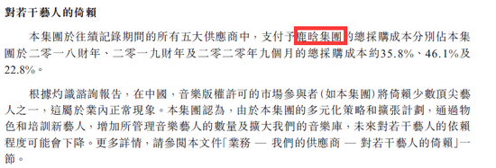 值得注意的是,招股书提及对若干艺人的倚赖,于2019年,支付予鹿晗集团(包括鹿晗控制的(i)东阳宸佑影视文化工作室;(ii)南京鹿晗影视文化工作室;及(iii)上海方昱影视文化工作室)的总采购成本占2019年的总采购成本的46.1%。
