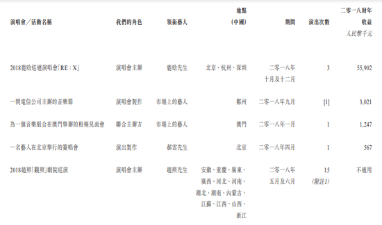 图:公司部分艺人演唱会收入