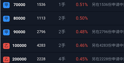 对于乙组,同样也是如此,快手估计乙头不可能超过4手,即便孖展总量和农夫山泉一样都是七千亿,预估快手乙头1-2手。这次甲组和乙组比,甲尾可能会占优势吗?大概率有着可能的,甲尾和乙头希望都是能1+1,至少必中一手,还有一定的概率再多中一手。对于乙组乙头,需要融资580万,对应的是5万股。这个变化倒不是很大,准备的资金量差距在1万以内,本金需要准备29万,加上利息一般在3k-5k,大家需要准备好至少29.5万的资金放在账户是最合适的。