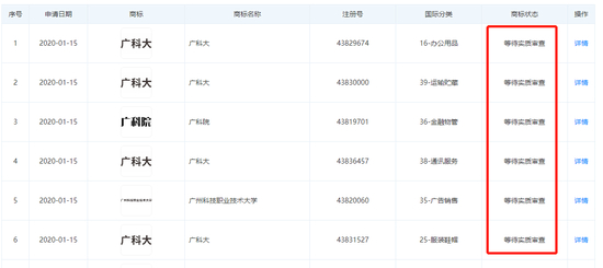 不过,新浪港股查询发现,广州科学职业技术大学并无“中国科大”的任何商标注册,即使“广科大”也都在“等待实质审查状态”,而中国科大有“中科大”、“科大”商标。“中国科大教育”和中国科大的商标“中科大”存在类似。