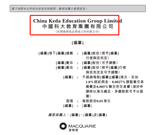 1月26日,中国科大教育集团有限公司提交赴港上市申请书,麦格理为独家保荐人。根据官网,中国科大教育集团有限公司在内地名字叫“广州科技职业技术大学”。