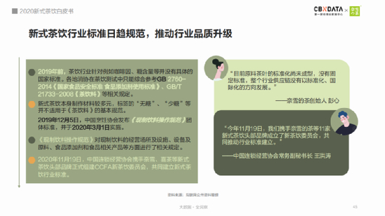 2021年2月4日牵头制订新式茶饮产品细化标准,为的就是促进新式茶饮行业的健康发展。事实上,对于当下的茶饮行业来讲,也正需要一些标准来维持行业更加有序的发展。