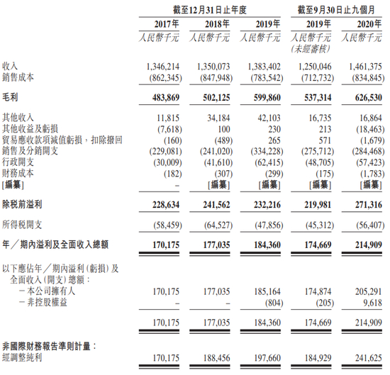 招股书显示,朝云集团2017年、2018年、2019年的营收分别为13.46亿元、13.50亿元、13.83亿元;期内利润(净利润)分别为1.70亿元、1.77亿、1.84亿元;经调整利润分别为1.70亿元、1.88亿元、1.98亿元。